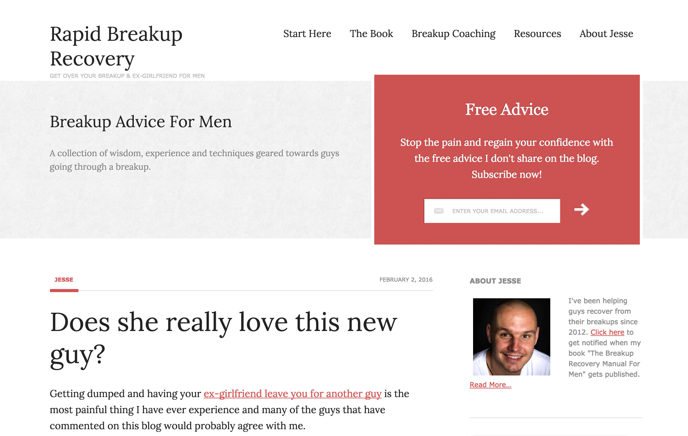 This is an introduction to one of my projects, Rapid Breakup Recovery (opens in a new tab), a blog focused on heartbreak recovery for men, which I’ve been working on (sporadically) since 2012.