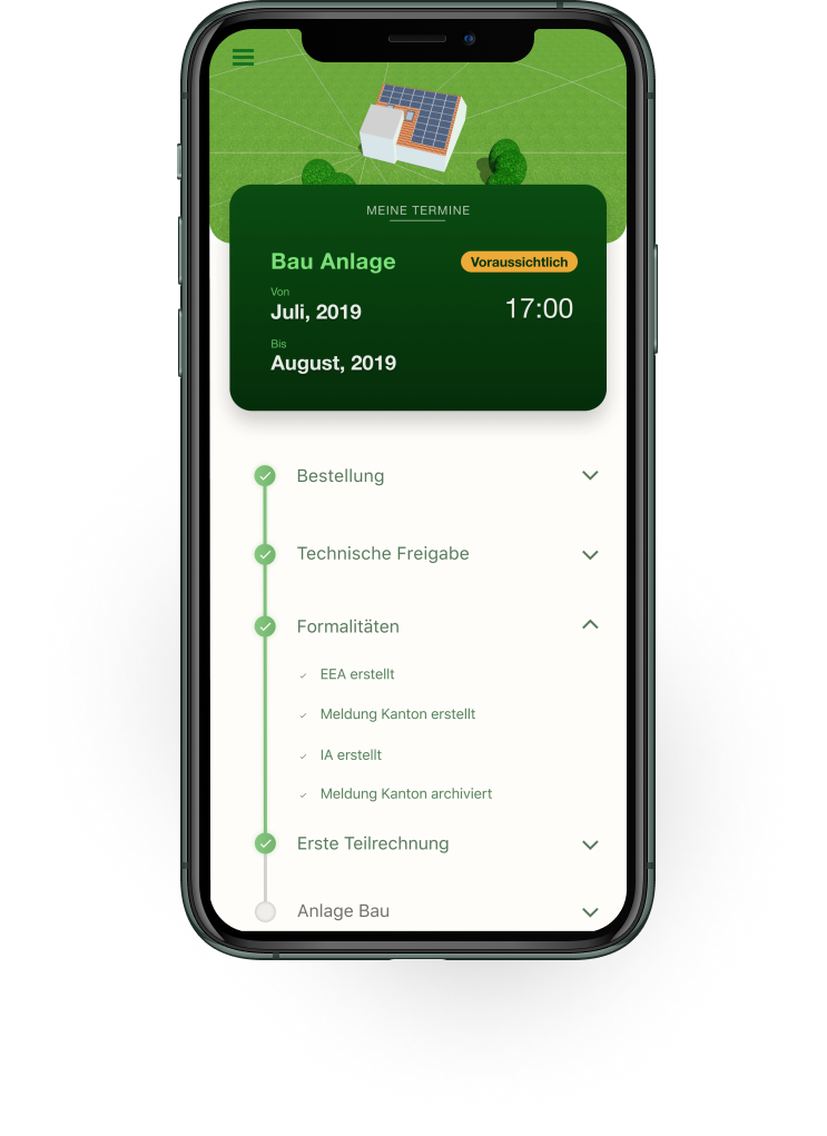 While the first project lost momentum, the second project kept moving along. My client for the second project, Axova AG, a Swiss solar panel installation service provider had two goals in mind when they conceived of the app.