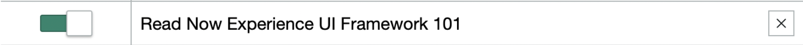 npm install @servicenow/now-toggle @servicenow/now-buttonLet's start by creating a label and a delete button. We'll use a simple static text for the label and we'll use the now-button component for the delete button.