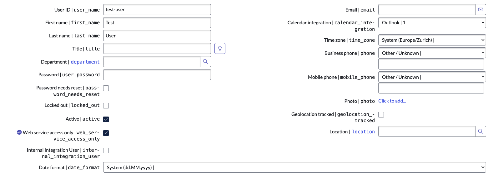 You can also set web_service_access_only to true to make sure the user can only access the web service.