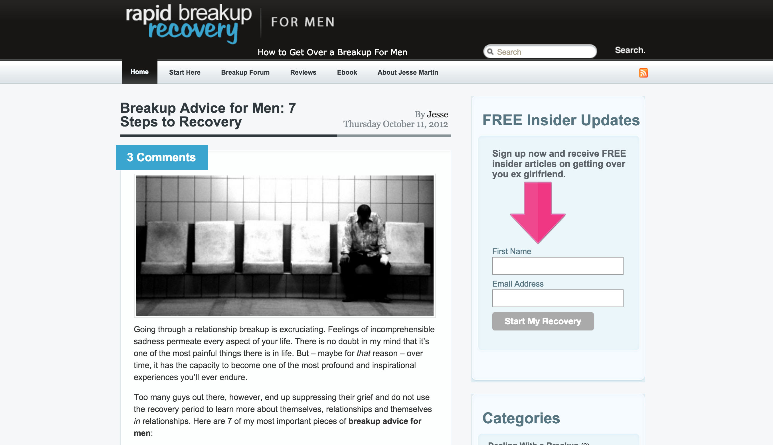 This is an introduction to one of my projects, Rapid Breakup Recovery (opens in a new tab), a blog focused on heartbreak recovery for men, which I’ve been working on (sporadically) since 2012.