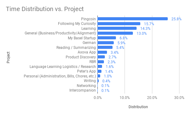 - I have still not edited the RBR podcast episode and the 4 Intercompanion podcast episodes. I am struggling to balance my desire to focus with keeping existing projects alive. This month I tried to focus on Pingcoin (which you can see by the time that was spent there). However, in order to do so, I neglected other projects. I can't help but wonder if I'm approaching this correctly