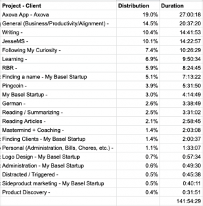 The time spent on JesseMS was actually also time spent writing. So in total I spent a little over 20% of my time writing this month!