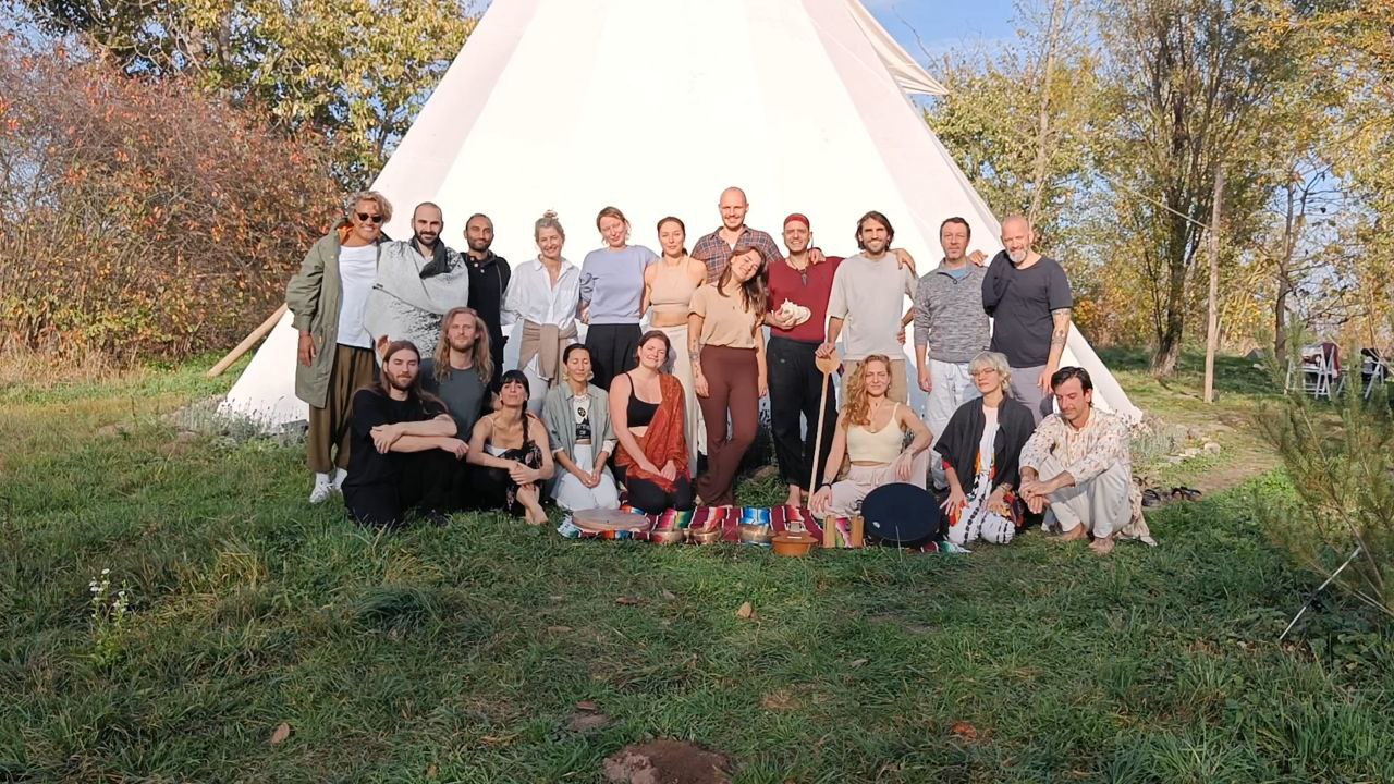 Kostas' courage is striking and it reminds me of the intention I had set and my desire to overcome fear-based patterns. This was a fear based pattern right here, so I set out to take 5 grams as well. The ritual takes place in a tipi big enough for 20 people to sit in a circle with a fire in the middle. Everyone has their own little mattress, blanket and cushion.