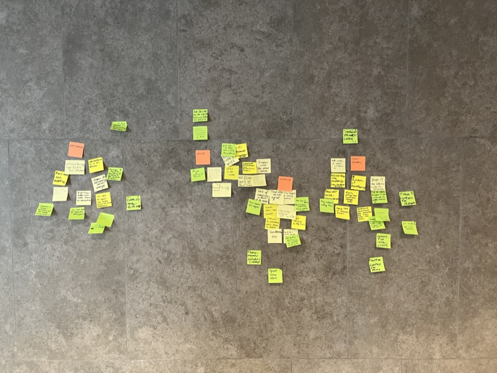 We started off by asking the participants to come up with problems which, if solved, would improve their current conference experience. They wrote down a litany of problems on post-its. One problem per post-it.