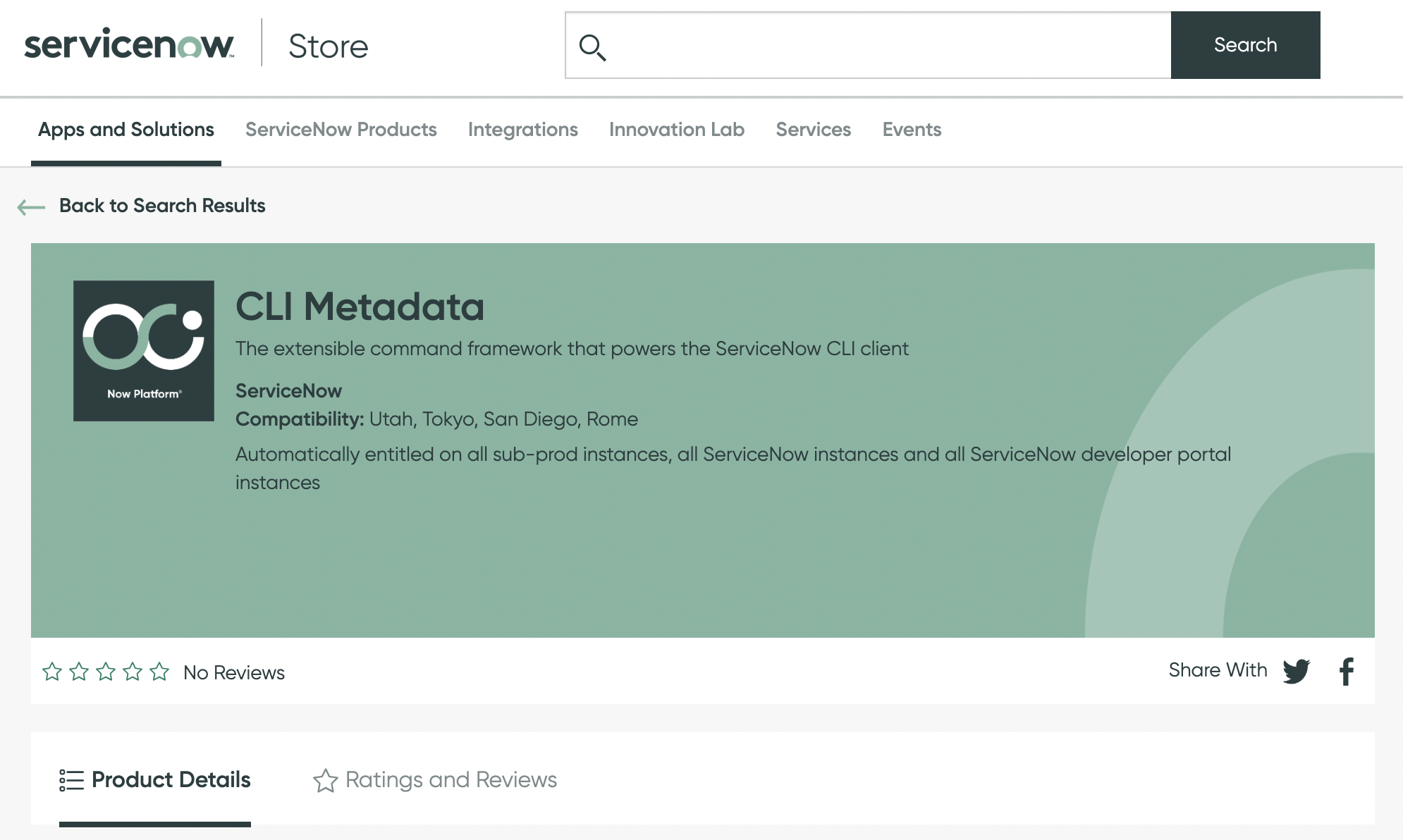 - Visit the ServiceNow Store (opens in a new tab) and search for CLI Metadata. Then enable it for your instances.