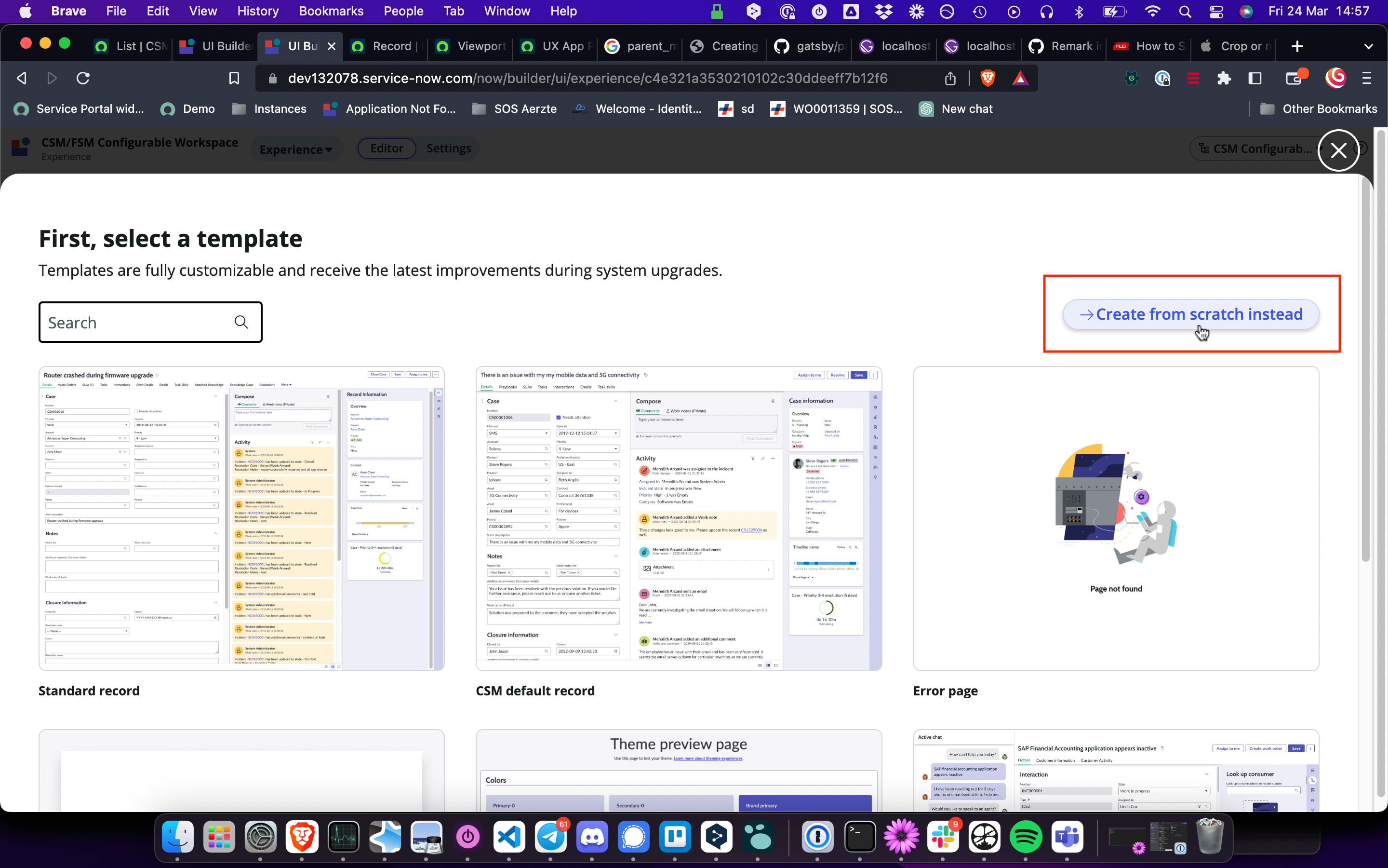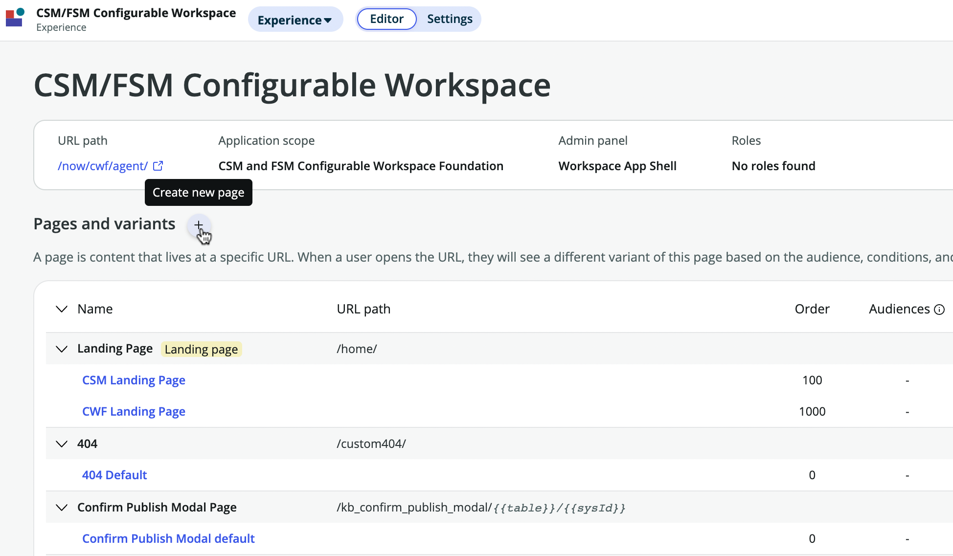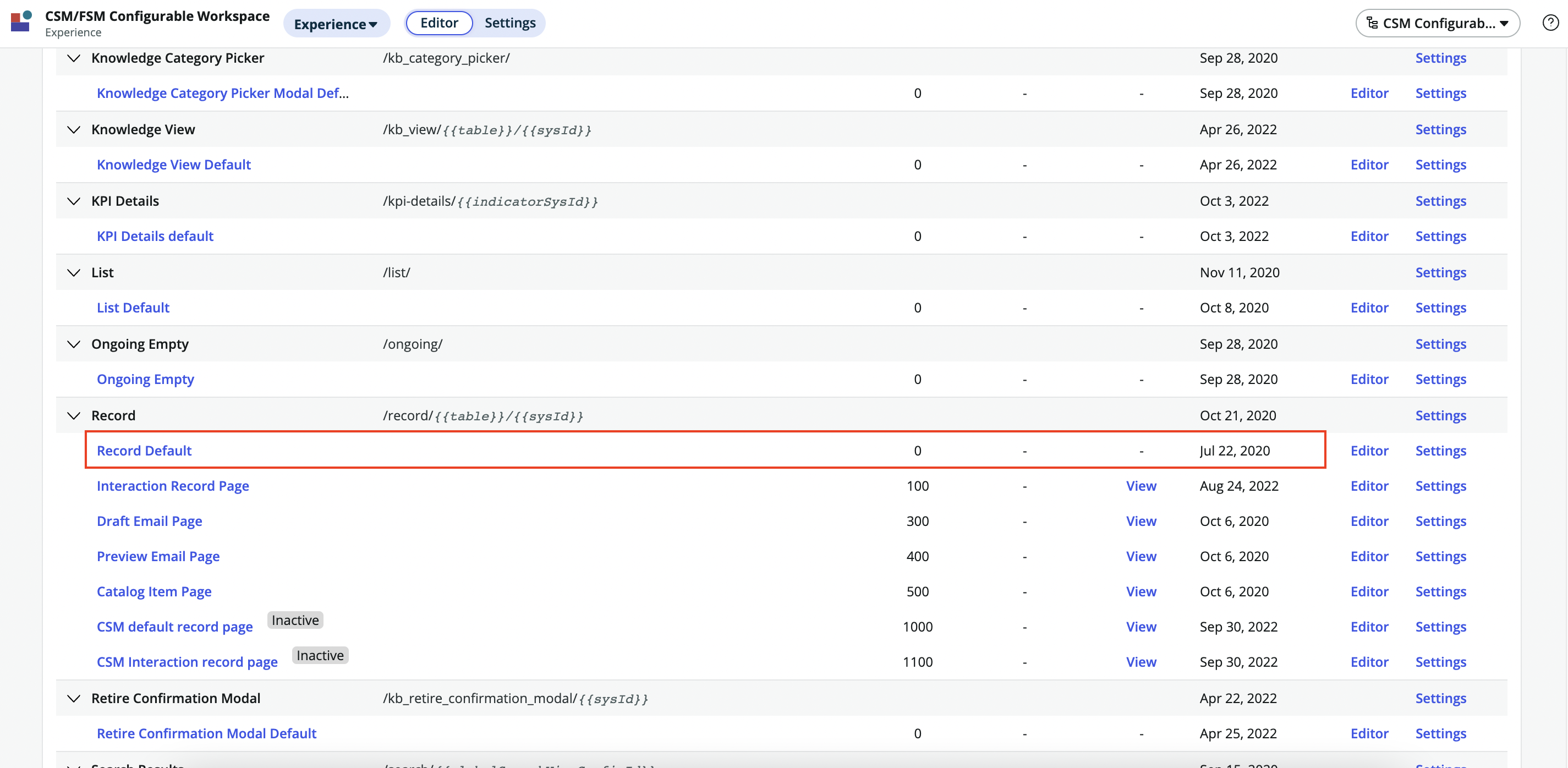 - On the UI Builder Home Screen under Experiences find and click on the CSM/FSM Configurable Workspace experience.