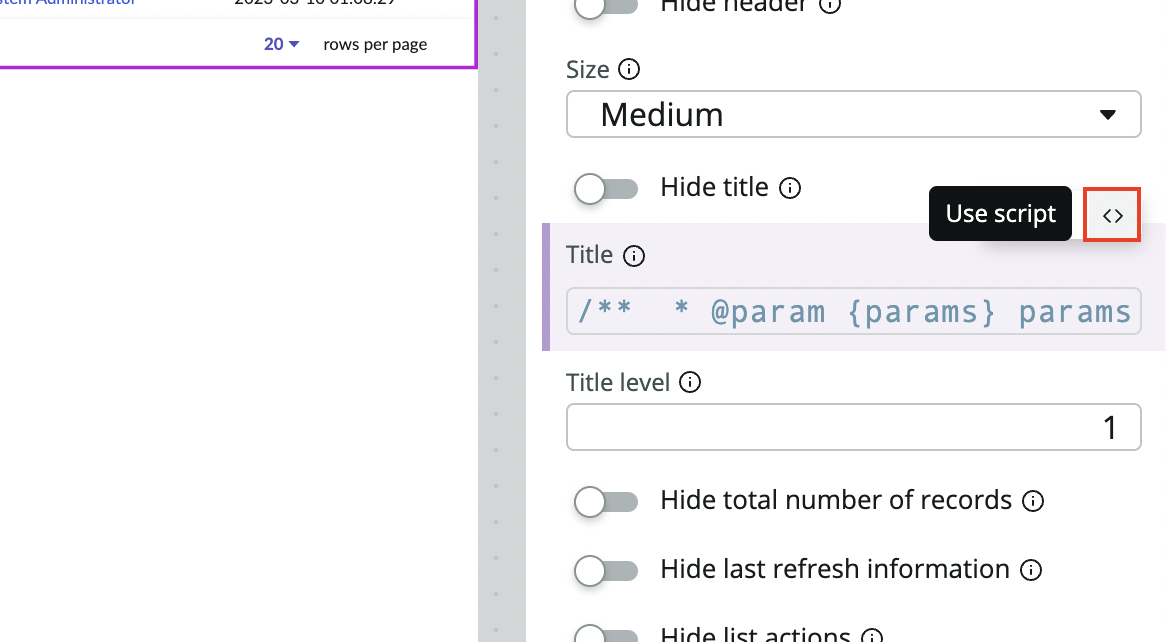 Scroll down a bit in the Config pane until you reach the "Title" field. Switch to Script mode.