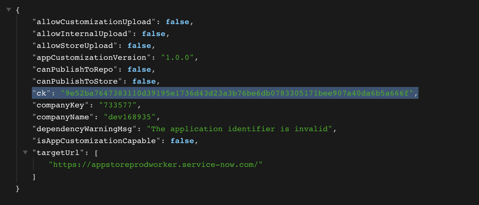 sys_processorrecord exposes an endpoint atsn_devstudio_/v1/get_publish_infothat returns a JSON object with — what looks like — some key information needed to publish a custom app. This object includes an entry for the CSFR tokenck.If you simply navigate to that endpoint e.g.