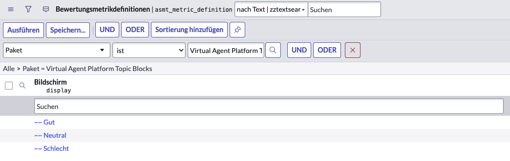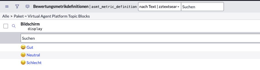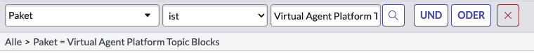 Set up a filter to filter for the Package Virtual Agent Platform Topic Blocks.